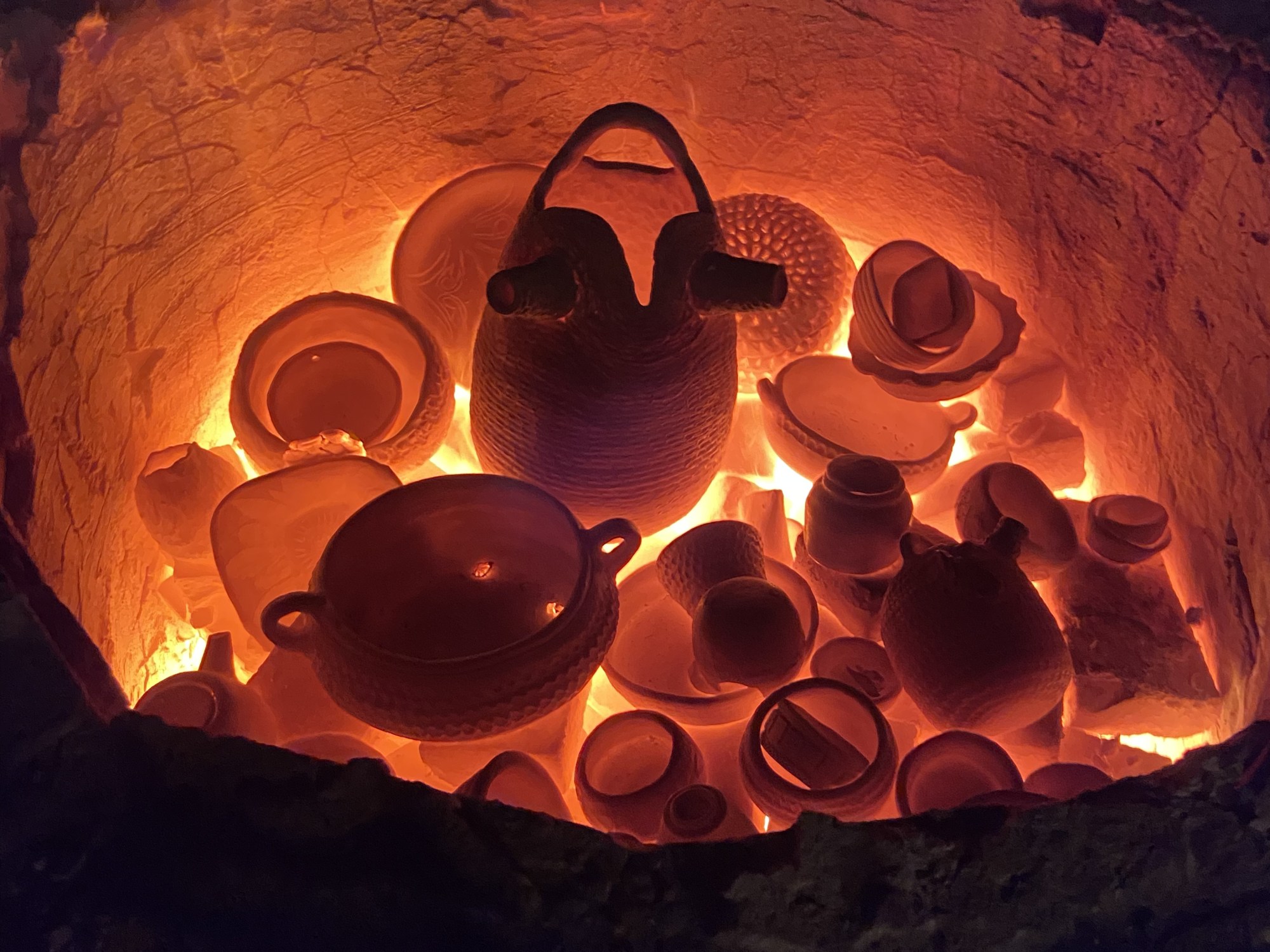 La cocción también es diferente. No usa hornos eléctricos, sino que las piezas se queman a leña en hornos tatacuá, pozo de fuego se podría traducir para nombrar los hornos con forma de iglú. Otras veces la quema es en grandes fogatas a cielo abierto, que son en sí mismas un espectáculo.