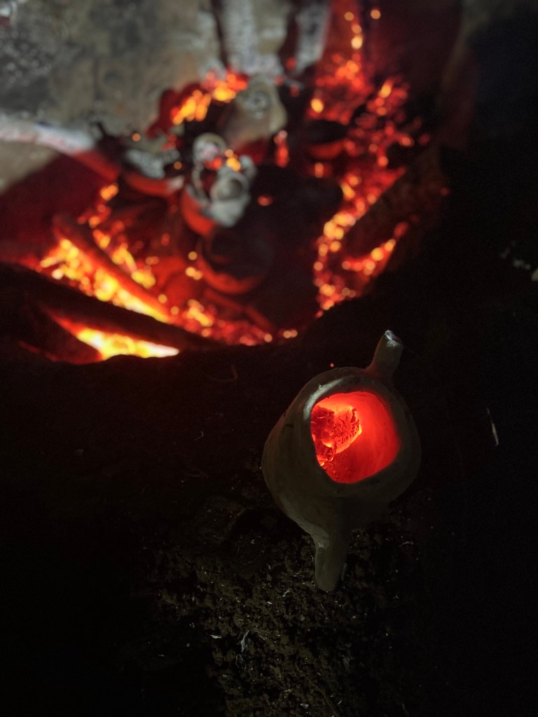 La cocción también es diferente. No uso hornos eléctricos, sino que las piezas se queman a leña en hornos tatacuá, pozo de fuego se podría traducir para nombrar los hornos con forma de iglú. Otras veces la quema es en grandes fogatas a cielo abierto, que son en sí mismas un espectáculo, un ritual participativo donde se da la bienvenida a la música y el chipá mbocá.