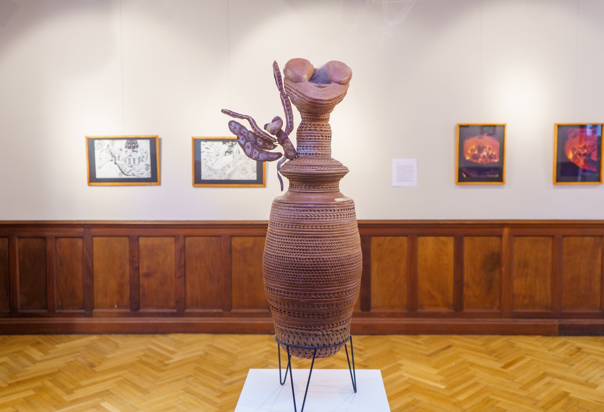 La muestra trae a las tres salas del Centro Cultural de la República del Paraguay aires del Litoral, con esculturas en barro, bronce y madera. Los artistas presentan también dibujos y acuarelas. La muestra se completa con una pieza sonora y un video de Richar De Itatí, desde donde brotan sonidos de la selva: chicharras, carayás, chamamés… Se puede ver también parte del proceso que llevó hasta ahí a los artistas: dibujos que son bocetos, moldes de cera. Modos en los que el diálogo a la distancia fue tomando forma.