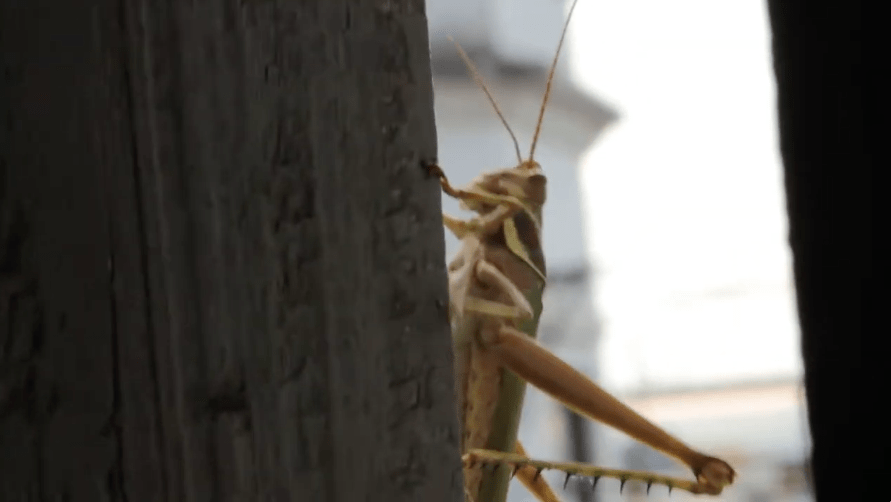 La frenada coincide con el primer acorde del acordeón y la langosta echa a andar siguiendo el ritmo. Sube y a su paso va descubriendo piezas de un rompecabezas que van encajando para señalar un punto en el mapa. Una ciudad detrás de la persiana, el destello de un río. Una parada de colectivos. Esa esquina ya sabemos cuál es. Esa pieza no es cualquier otra. El animalito jurásico sigue su andar y podría ser cualquiera de las criaturas que ahí crean los artistas. Es un recuerdo de la selva que los rodea.