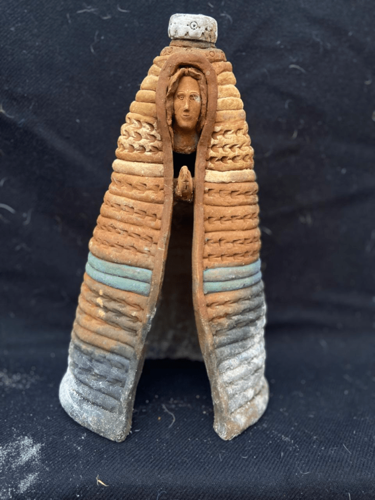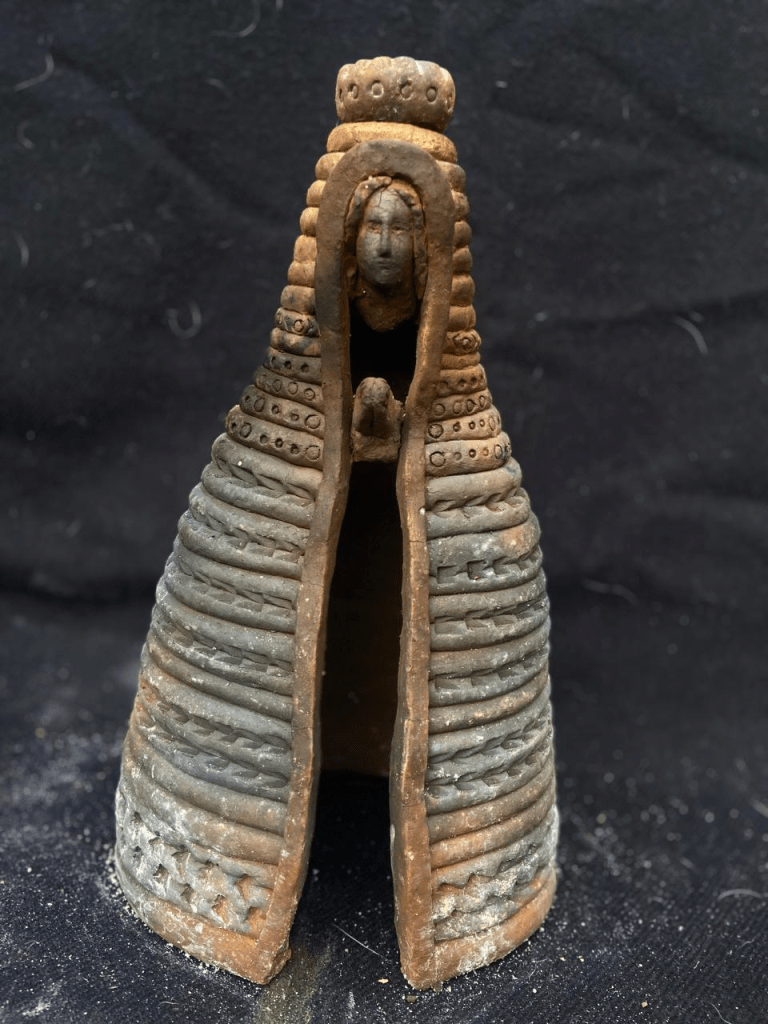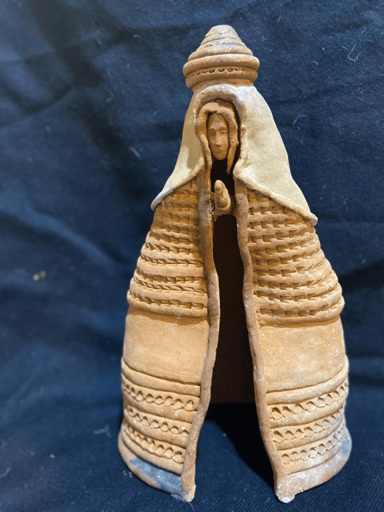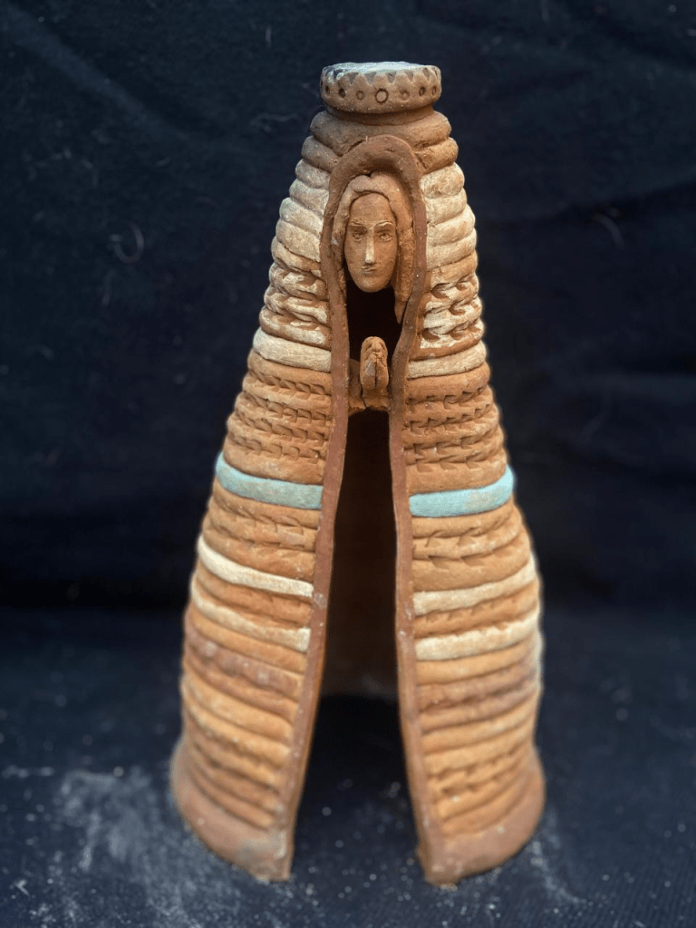 Al atardecer, cuando comienza a asomar la luna llena, llega a la costa del río una pequeña flota de canoas, iluminadas apenas con la llama tenue de su proa. Como mascarón, cada una trae una Virgen de Itatí hecha en cerámica con barro del lugar donde se cuenta que apareció la Virgen, en Itatí. La Virgen es hueca como lo son las piezas de cerámica. Su manto está realizado con la técnica de chorizo o rollizo superpuesto y corrugado, según la tradición alfarera guaraní, y tienen distintos engobes que les dan color. Posee una abertura en el frente que coincide con la caída del vestido, y esto permite introducir una vela. Rodea a cada pieza flores y más velas. En el medio de la V que forman las 14 canoas de pescadores.