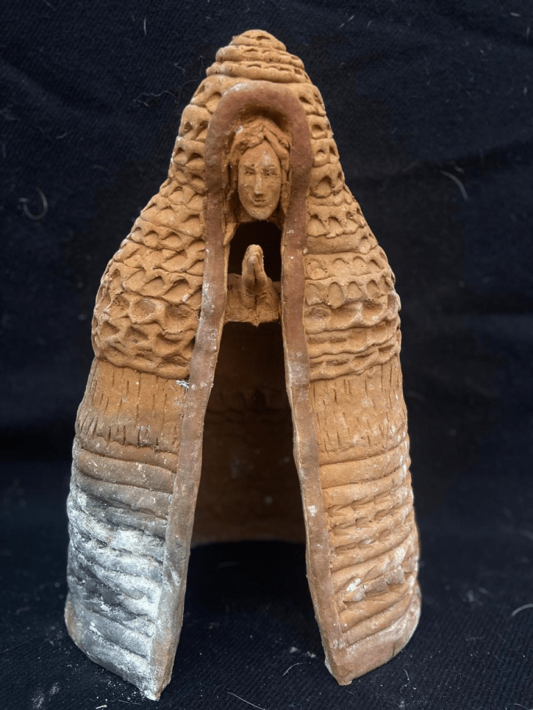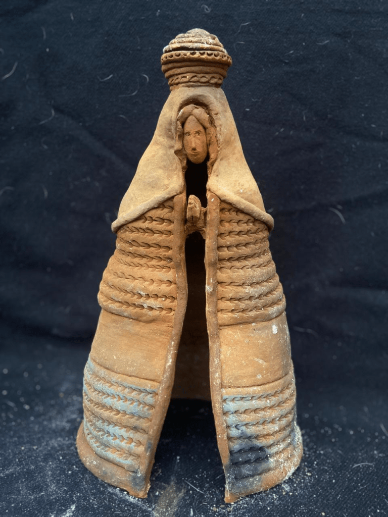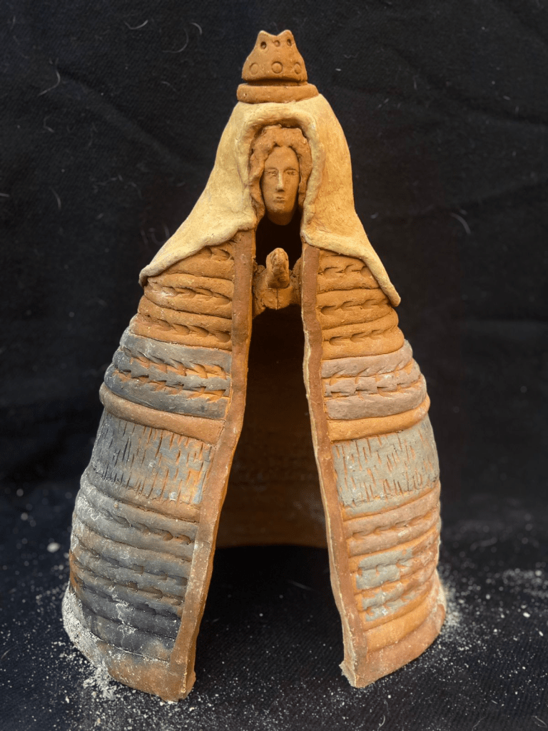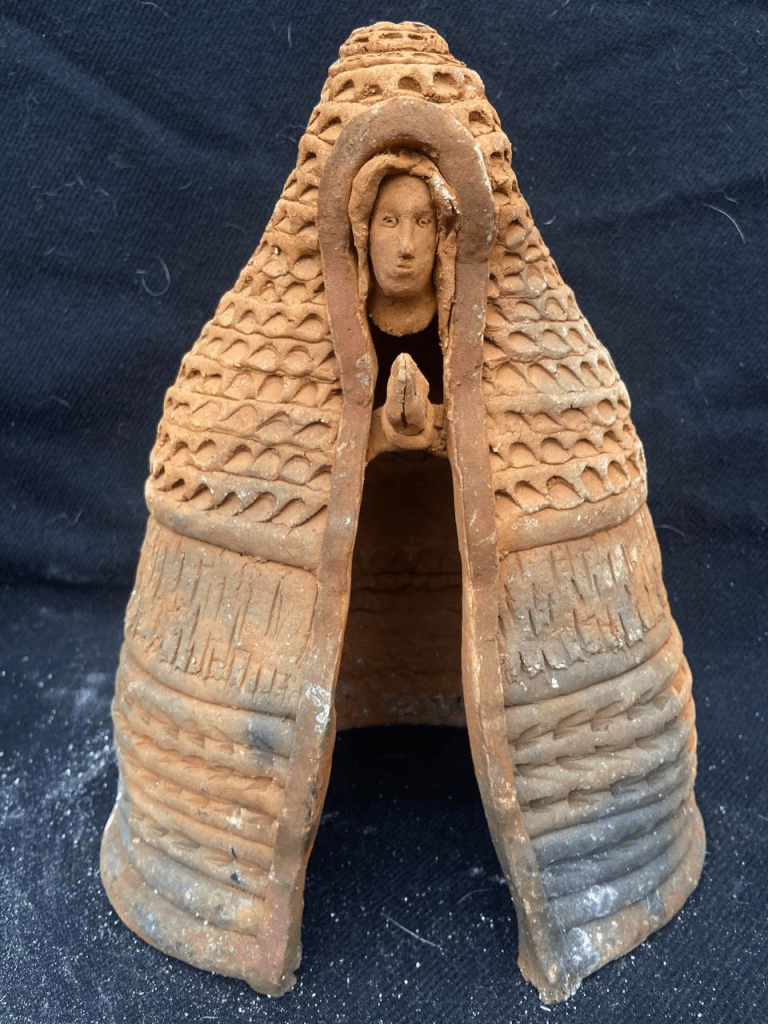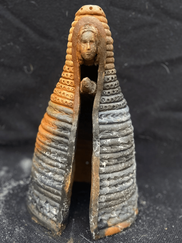 Al atardecer, cuando comienza a asomar la luna llena, llega a la costa del río una pequeña flota de canoas, iluminadas apenas con la llama tenue de su proa. Como mascarón, cada una trae una Virgen de Itatí hecha en cerámica con barro del lugar donde se cuenta que apareció la Virgen, en Itatí. La Virgen es hueca como lo son las piezas de cerámica. Su manto está realizado con la técnica de chorizo o rollizo superpuesto y corrugado, según la tradición alfarera guaraní, y tienen distintos engobes que les dan color. Posee una abertura en el frente que coincide con la caída del vestido, y esto permite introducir una vela. Rodea a cada pieza flores y más velas. En el medio de la V que forman las 14 canoas de pescadores.