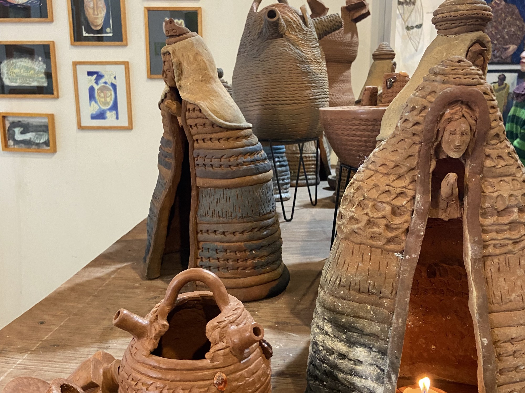 Hay una canoa especial, más pequeña (180cm), de construcción artesanal realizada por carpinteros especialistas de Itatí, Gayoso Cuatro Hermanos, intervenida con colores y stencil. Lleva a bordo a la Virgen más grande. La peregrinación se acerca a la costa cada atardecer y permanece hasta que sale la luna llena, en el área donde transcurre ArteCo 2024. El público puede arrojar flores al río. Durante el día de feria, las 15 vírgenes están como instalación. Algunas en el piso en mi stand como artista individual, otras en la plaza seca junto con la canoa. El público puede interactuar con las obras, mediante velas, flores o peticiones.