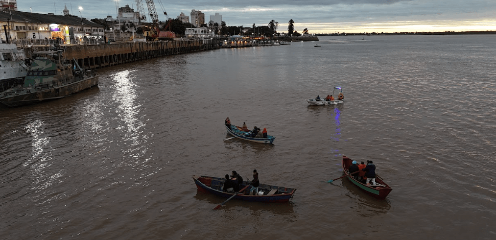 Llegaban al puerto las canoas de pescadores del barrio de Itatí de la ciudad de Corrientes, con sus virgencitas de barro como mascarones de proa. Van escoltadas por artistas amigos de Richar De Itatí y seguidores de su arte. En medio había una especial, más pequeña (180cm), de construcción artesanal realizada por carpinteros especialistas de Itatí, los hermanos Gayoso, intervenida con colores y stencil por el artista Hernán Ramírez. Lleva a bordo a la Virgen más grande.